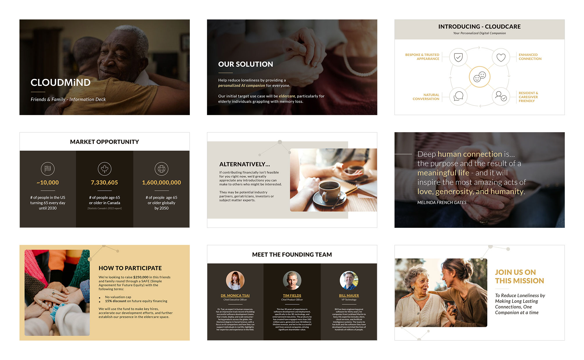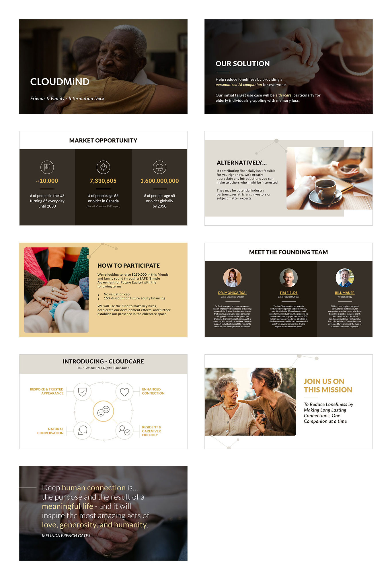 CloudMind provides personalized AI companions to help reduce loneliness. Their initial target use case is eldercare, particularly for those grappling with memory loss. The client was seeking to redesign their logo and rebrand their existing documents.