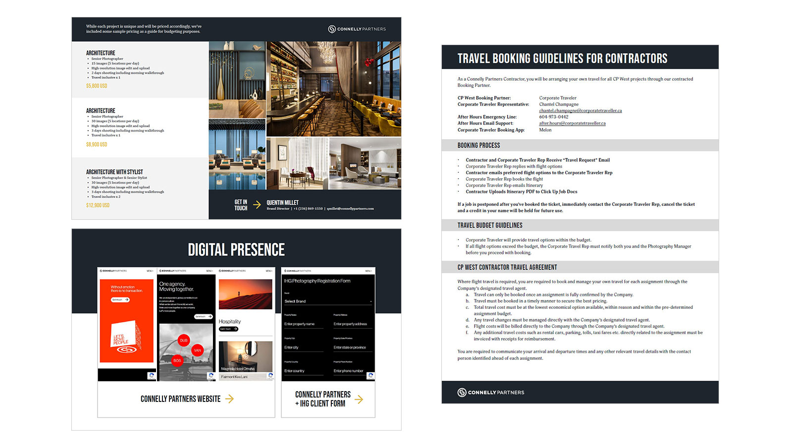 I was tasked to create a comprehensive library of branded materials. I created a unified, professional look and feel for documents such as request for proposals, estimates, workflows, and briefs, alongside standard presentations. This ensured the CP West team was equipped with templates and documents that they could easily use and modify as needed.