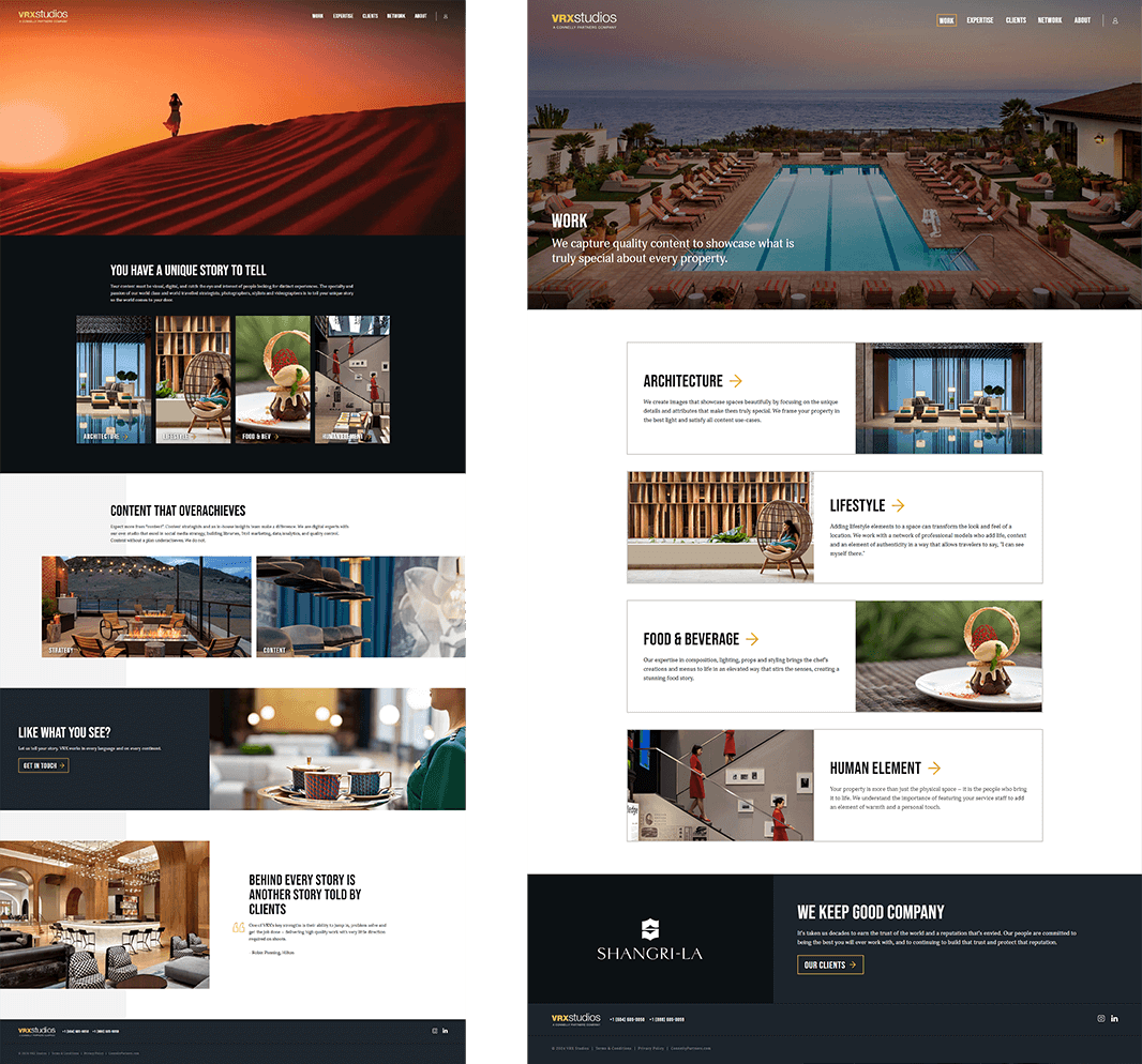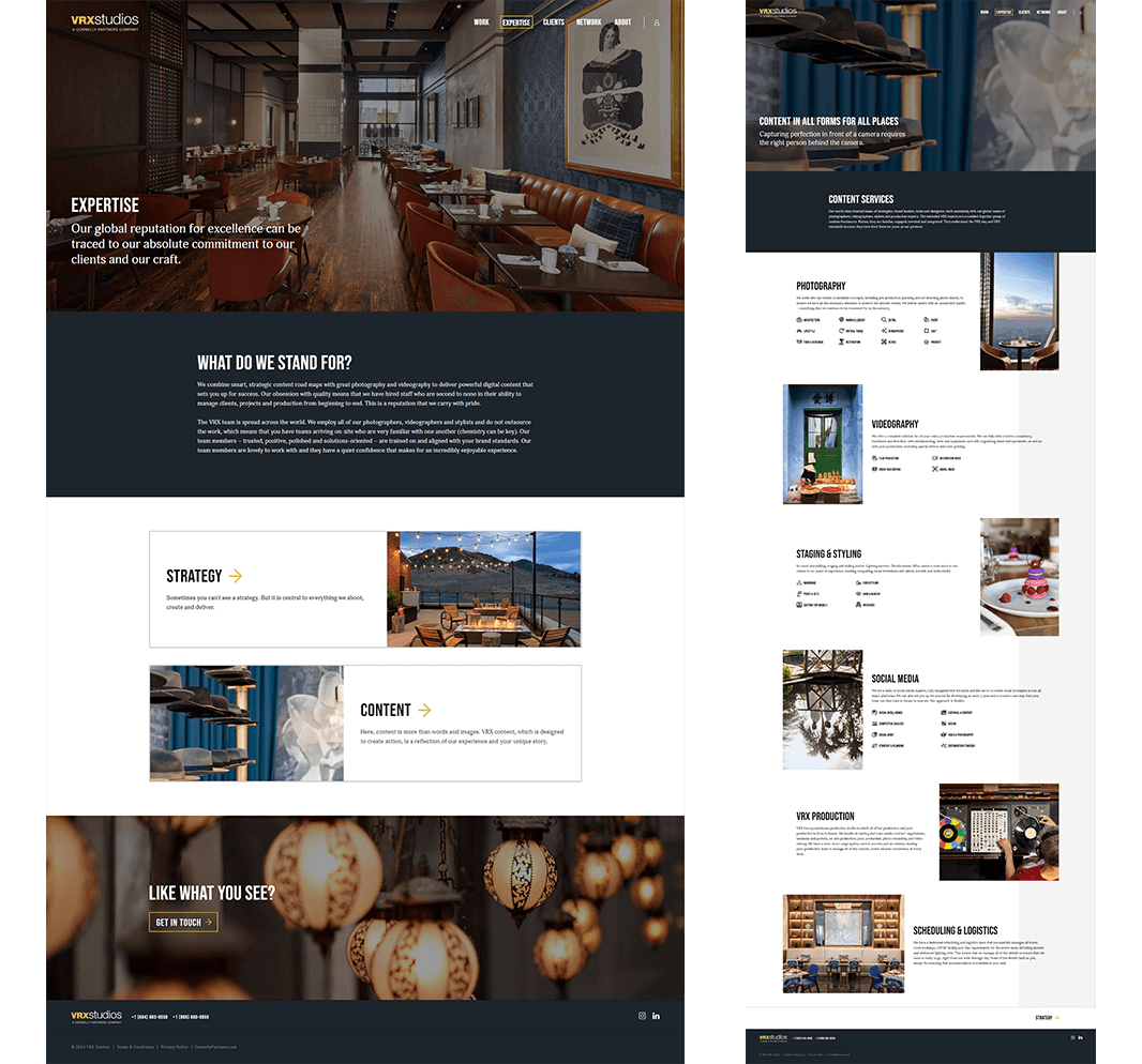 This was an exciting strategic visual redesign for VRX Studios, a leader in content creation, following their acquisition by Connelly Partners. The main goal was to blend the two corporate identities into a fresh, cohesive website while making sure VRX’s unique reputation and independent operations stayed front and center for their clients.
